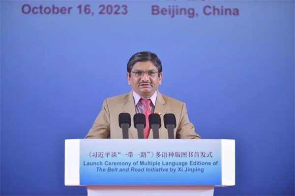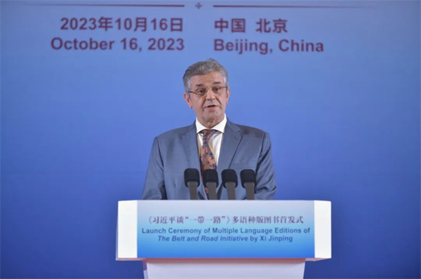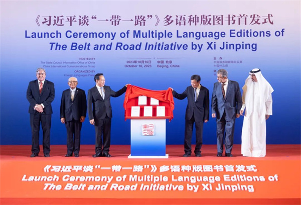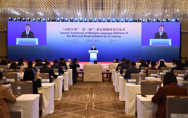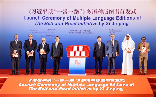 第三屆“一帶一路”國際合作高峰論壇召開前夕,《習近平談“一帶一路”》多語種版圖書首發式10月16日在北京舉行。中共中央宣傳部副部長王綱出席活動並致辭。埃及前總理伊薩姆·沙拉夫發表視頻致辭。中國外文局局長杜占元,巴拿馬駐華大使甘林,敘利亞駐華大使穆罕默德·哈桑內·哈達姆,秘魯駐華大使馬爾科·巴拉雷索,科威特駐華大使賈西姆·易卜拉欣·納吉姆,巴基斯坦伊斯蘭堡和平與外交研究所所長穆罕默德·阿西夫·努爾,中國人民大學重陽金融研究院執行院長、絲路學院副院長王文以及外文出版社榮譽英文主編、國際傳播專家大衛·弗格森等嘉賓出席了首發式。中國外文局副局長兼總編輯高岸明主持首發式。
