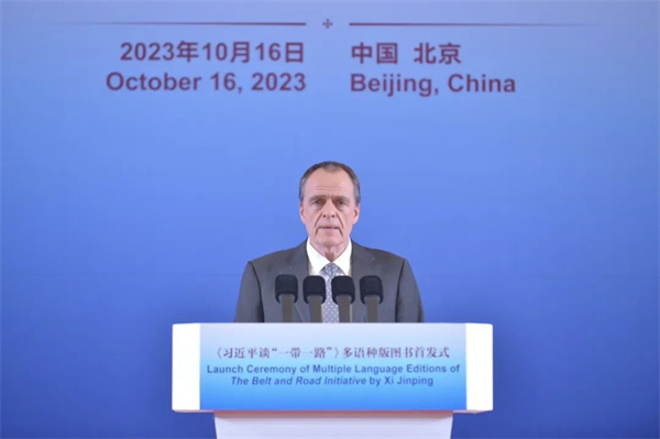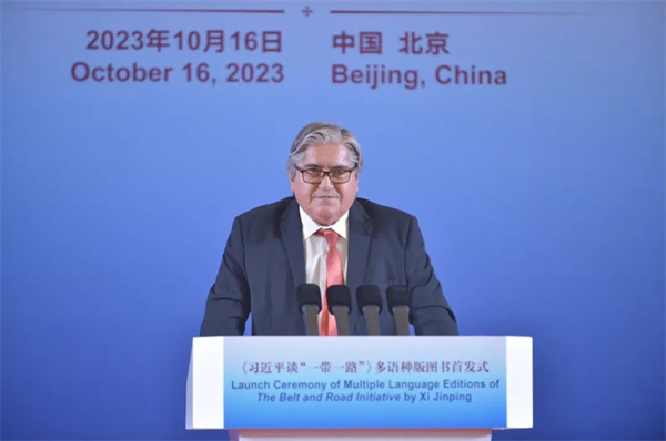 秘魯駐華大使馬爾科·巴拉雷索肯定了十年來“一帶一路”倡議給世界帶來的影響。他指出,“一帶一路”倡議是一項全球性倡議,為政策溝通、設施聯通、貿易暢通、資金融通和民心相通的實現提供了藍圖,同時也是不同文明合作的主要平台和公共產品。秘魯是“一帶一路”倡議合作夥伴,也是全球發展倡議的“朋友圈”成員,秘中兩國之間關係務實、全麵、互信,將攜手推動全球治理朝著更加公正合理的方向發展,促進和平繁榮、合作共贏。他相信《習近平談“一帶一路”》多語種版圖書的出版,能讓世界上更多讀者了解共建“一帶一路”倡議的理念和實踐成果。