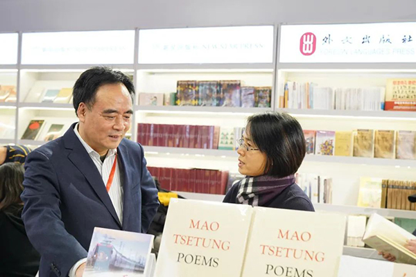 外文出版社攜《習近平談治國理政》等多部領袖著作、“讀懂中國”係列、“絲路百城傳”係列等近五百冊圖書參展,與來自全國近百家經銷商洽談,初步訂貨金額近百萬元。