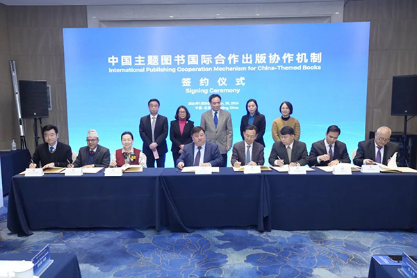 推進會上舉行了“中國主題圖書國際合作出版協作機製”擴員簽約儀式,韓國、吉爾吉斯斯坦、巴基斯坦、匈牙利、保加利亞、肯尼亞、孟加拉國、老撾、烏茲別克斯坦、泰國、阿富汗、希臘和尼泊爾等13個國家的出版機構和研究機構代表完成了簽約。