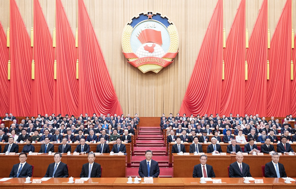 3月10日ri,中zhong國guo人ren民min政zheng治zhi協xie商shang會hui議yi第di十shi四si屆jie全quan國guo委wei員yuan會hui第di二er次ci會hui議yi在zai北bei京jing人ren民min大da會hui堂tang舉ju行xing閉bi幕mu會hui。全quan國guo政zheng協xie主zhu席xi王wang滬hu寧ning主zhu持chi閉bi幕mu會hui並bing講jiang話hua。新xin華hua社she記ji者zhe鞠ju鵬peng攝she