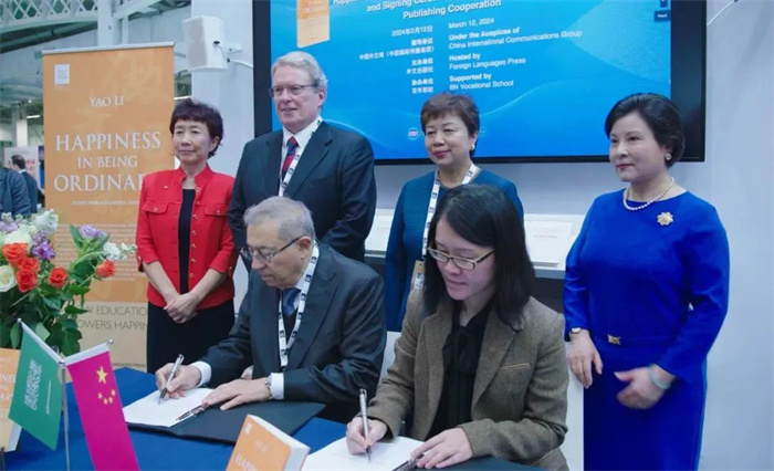 3月12日,由中國外文局指導,外文出版社主辦的《做幸福的普通人——百年職校的故事》英文版首發式暨國際出版合作簽約儀式在2024年倫敦國際書展上舉行。中國外文局副總編輯陳實、中國駐英國大使鄭澤光夫人華梅參讚、愛爾蘭前駐華大使戴克瀾(Declan Kelleher)、阿拉伯科學出版社社長巴薩姆·切巴羅、泛亞婦女協會聯合創始人姚詠蓓、百年職校理事長姚莉,以及外文局所屬單位領導等中外嘉賓30餘人出席活動。