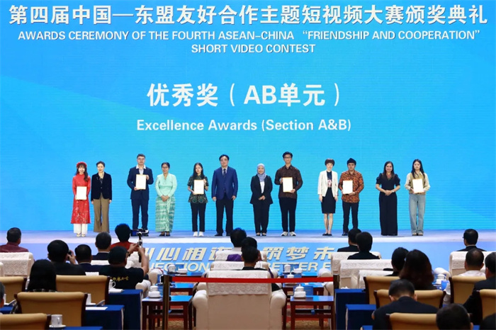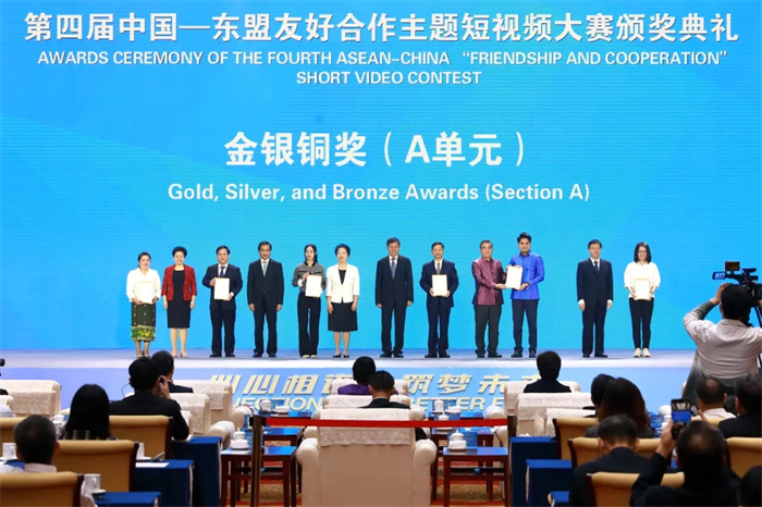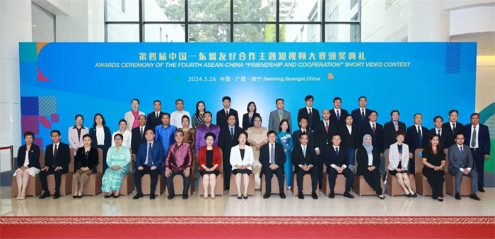 出席第四屆中國—東盟友好合作主題短視頻大賽頒獎典禮的中外嘉賓合影