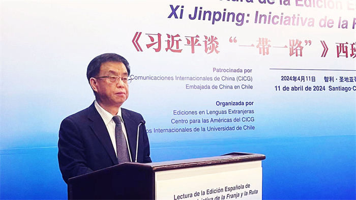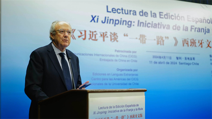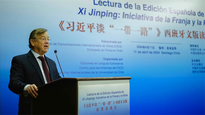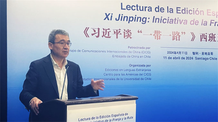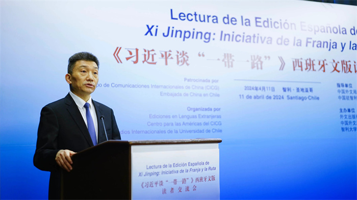 當地時間4月11日上午,由中國外文局、中國駐智利大使館指導,外文出版社、中國外文局美洲傳播中心(北京周報社)、智利大學國際關係學院主辦的《習近平談“一帶一路”》西班牙文版讀者交流會在智利首都聖地亞哥舉行。