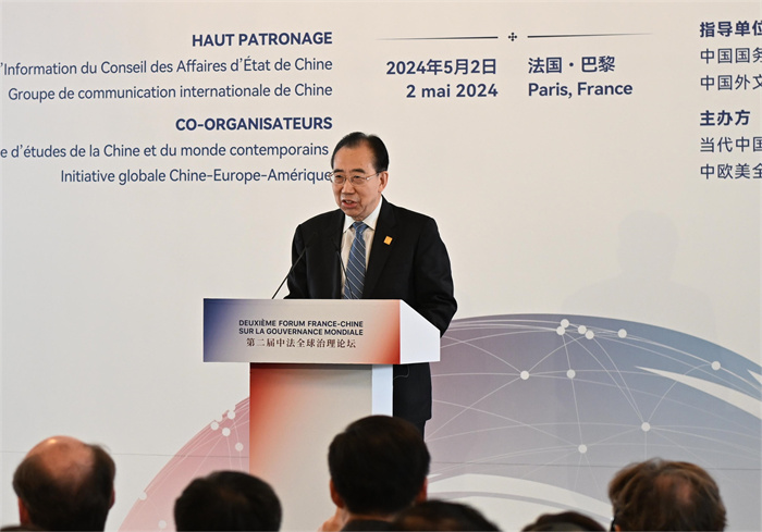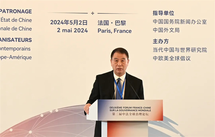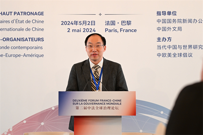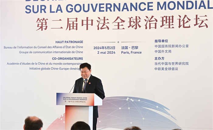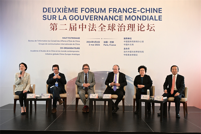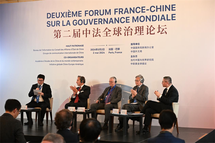 5月2日,由國務院新聞辦公室、中國外文局指導,當代中國與世界研究院聯合中歐美全球倡議共同主辦的“第二屆中法全球治理論壇”在法國巴黎舉辦。來自中法兩國的百餘位專家學者圍繞“深化全球治理改革共建多邊主義未來”這一主題展開深入研討交流。