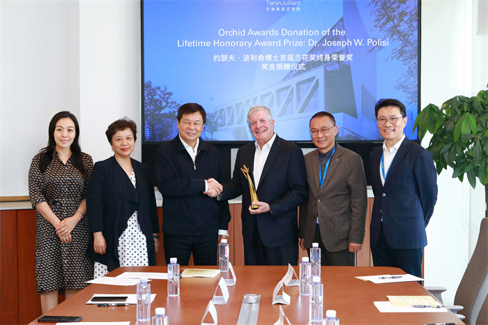 5月20日,中國外文局局長杜占元一行赴天津茱莉亞學院調研,會見首屆蘭花獎終身榮譽獎獲得者——紐約茱莉亞學院榮休院長、首席中國事務官約瑟夫·波利希,並見證波利希將獎金贈予天津茱莉亞學院教育發展基金會。中國外文局副總編輯、國際傳播發展中心主任陳實,以及中國外文局國際合作部主要負責同誌、天津市委宣傳部、濱海新區宣傳部有關負責同誌參加會見。