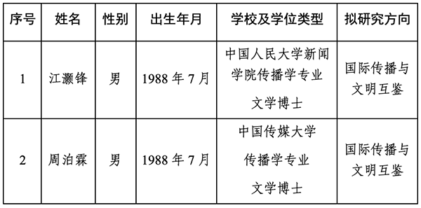 經個人申請,中國外文局博士後科研工作站專家組審核、麵試、體檢,現將2024年擬進站博士後人員予以公示。公示期間如有不同意見,請向中國外文局博士後科研工作站管理辦公室反映。