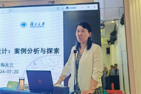 7月20日下午,複旦大學外文學院翻譯係主任、翻譯碩士(MTI)教育中心主任,全國翻譯專業學位研究生教育指導委員會委員陶友蘭圍繞“MTI畢業論文設計:案例分析與探索”授課。課程從MTI 畢業論文寫作現狀及問題出發,探索翻譯學界、譯界與業界對畢業論文的要求,結合優秀翻譯實踐報告分析案例闡述寫作思路,並指出在選題、寫作和論證過程中需注意的要素,提出可行的課程建議及教學管理方案。