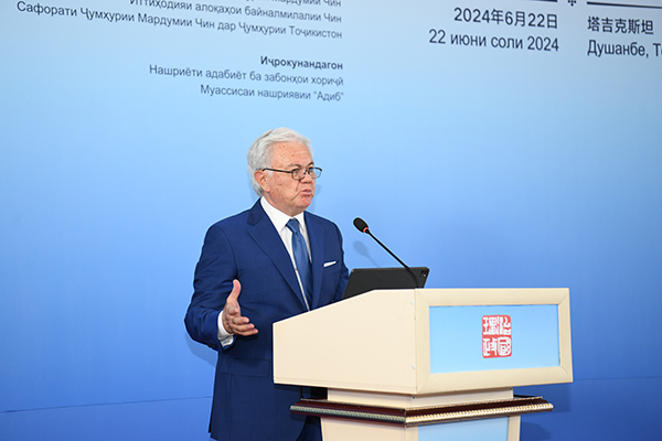 吉樹民表示,五年前中塔各界代表曾共同見證《習近平談治國理政》第一卷塔吉克文版首發式的曆史性時刻,此次再次聚首分享閱讀《習近平談治國理政》的心得,展望中塔關係未來,具有特殊意義。該書記錄了習近平主席有關治國理政的深刻思考與偉大實踐,提供了一個集中感知中國、客觀認識中國的獨特窗口,有助於讀者了解中國的世界觀、價值觀和責任觀,領略習近平主席卓越的政治智慧、獨特的人格魅力和領袖風範。在習近平主席與拉赫蒙總統戰略引導下,中塔關係不斷取得新成果、新進步,在治國理政方麵交流經驗、相互促進,有利於雙邊合作,是中塔關係的重要內容。