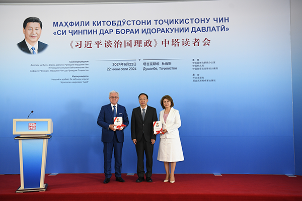 當地時間6月22日,《習近平談治國理政》中塔讀者會在塔吉克斯坦首都杜尚別舉行。活動由中國國務院新聞辦公室、中國外文局、zhongguozhutajikesitandashiguanzhuban,zhongguowaiwenjusuoshuwaiwenchubanshehetajikesitanzuojiachubanshegongtongchengban。zhongguowaiwenjufujuchangyuyunquan,zhongguozhutajikesitandashijishumin,tajikesitanwenhuabubuchangmatelubahong·薩托麗約恩,塔吉克斯坦前外長、上海合作組織前秘書長拉希德·阿利莫夫以及中塔兩國政界、學界、出版界等各界人士150餘人出席活動。