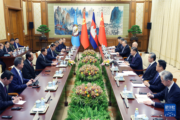 習近平指出,當前,國際形勢變亂交織,全球性挑戰層出不窮,考驗著各國的應對和選擇。中柬兩國都致力於做世界的和平力量、發展力量、進步力量。中方將繼續支持柬埔寨在國際和地區事務中發揮更大作用,壯大“全球南方”力(li)量(liang),支(zhi)持(chi)東(dong)盟(meng)堅(jian)持(chi)戰(zhan)略(lve)自(zi)主(zhu),維(wei)護(hu)中(zhong)心(xin)地(di)位(wei),堅(jian)決(jue)反(fan)對(dui)外(wai)部(bu)勢(shi)力(li)將(jiang)冷(leng)戰(zhan)思(si)維(wei)引(yin)入(ru)本(ben)地(di)區(qu),堅(jian)定(ding)不(bu)移(yi)推(tui)動(dong)東(dong)盟(meng)一(yi)體(ti)化(hua)和(he)共(gong)同(tong)體(ti)建(jian)設(she)。中(zhong)方(fang)願(yuan)同(tong)柬(jian)方(fang)堅(jian)定(ding)道(dao)不(bu)改(gai)、誌不變的決心,增強底線思維,加強協作和配合,共同應對各種風險。