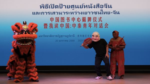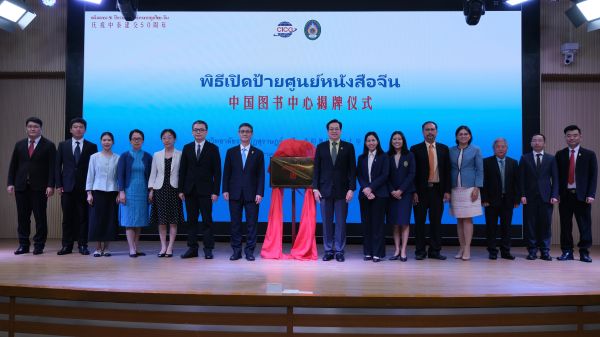 1月20日,泰國素叻他尼皇家大學中國圖書中心揭牌儀式暨“我讀中國:中泰青年對話會”活動在泰國素叻他尼皇家大學舉行。中國外文局總編輯高岸明、中國駐宋卡總領館代總領事張小溶、素叻他尼皇家大學校長瓦塔納·臘塔納鵬、亞太智庫主任威倫·披差翁帕迪等中泰嘉賓及中泰青年代表參加活動。