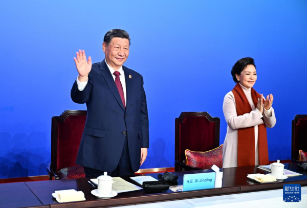 19時58分,在《和平——命運共同體》的樂曲聲中,習近平和夫人彭麗媛,同國際奧委會主席巴赫、亞奧理事會第一副主席霍震霆等步入主席台,向觀眾揮手致意。全場響起長時間的熱烈掌聲。