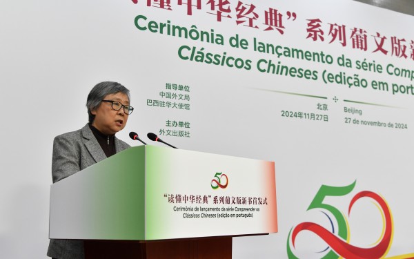 11月27日,由中國外文局、巴西駐華大使館指導,外文出版社主辦的“讀懂中華經典”係列葡文版新書首發式在北京舉行。