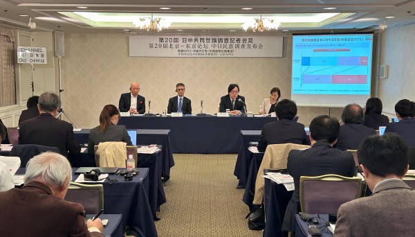 12月2日,由中國外文局和日本言論NPO共同實施的第二十屆“北京—東京論壇”中日關係輿論調查結果在日本東京發布。中國外文局總編輯高岸明對中方調查數據、調查基本情況和主要調查發現進行說明。言論NPO理事長工藤泰誌、零點有數董事長袁嶽出席發布會。