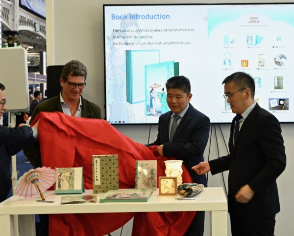 3月11日,由中國外文局指導,外文出版社主辦的《畫裏話外三生緣——戴敦邦繪〈白蛇傳〉新篇》中英對照版圖書及相關文創發布會在2025年倫敦國際書展舉行。中國駐英國大使館公使銜參讚李立言、中國科技出版傳媒股份有限公司監事會主席張放、中國科技出版傳媒股份有限公司副總編輯王靜、意大利白星出版公司副總裁Roberto Nardini、法國EDP sciences出版公司總經理Agnès HENRI(視頻參會),以及局屬單位負責同誌等中外嘉賓出席活動。