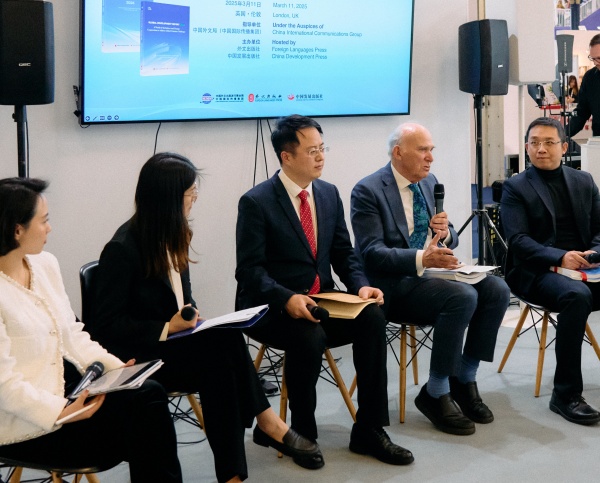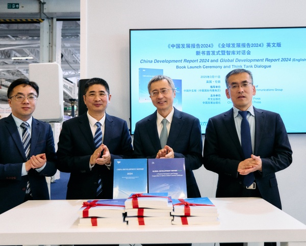 3月11日,由中國外文局指導,外文出版社和中國發展出版社主辦的《中國發展報告2024》《全球發展報告2024》英文版新書首發式暨智庫對話會在2025年倫敦國際書展上舉行。中國駐英國大使館臨時代辦王起公使,中國發展出版社社長王忠宏,英國前商業、創新和技能大臣文斯·凱布爾爵士,英國48家集團主席傑克·佩裏,以及局屬單位負責同誌等中外嘉賓40餘人出席活動。