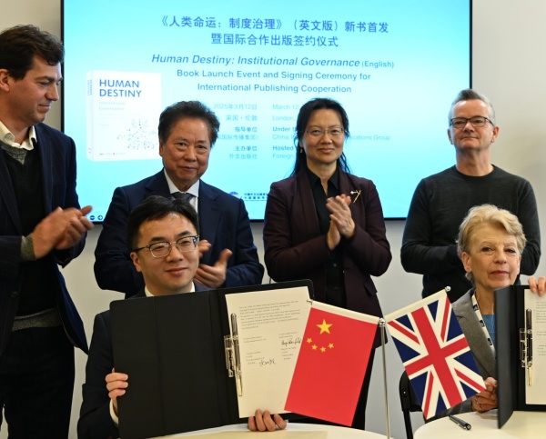 3月12日,由中國外文局指導,外文出版社主辦的《人類命運:製度治理》(英文版)新書首發暨國際合作出版簽約儀式在2025年倫敦國際書展舉行。