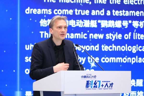 在專題論壇上,中國外文局西歐與非洲傳播中心(今日中國雜誌社)法文專家、國際關係學博士朱利安·巴ba菲fei特te認ren為wei科ke幻huan文wen學xue真zhen正zheng的de珍zhen貴gui之zhi處chu,在zai於yu它ta擁yong有you創chuang造zao無wu限xian想xiang象xiang空kong間jian的de力li量liang,能neng成cheng為wei連lian接jie地di球qiu不bu同tong文wen化hua之zhi間jian的de橋qiao梁liang。他ta堅jian信xin此ci次ci活huo動dong將jiang加jia深shen中zhong西xi方fang文wen化hua之zhi間jian的de交jiao流liu互hu鑒jian,共gong同tong書shu寫xie科ke幻huan史shi詩shi,譜pu寫xie人ren類lei未wei來lai的de壯zhuang麗li詩shi篇pian。
