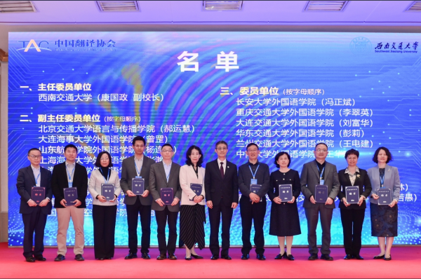 4月24日下午,2025中國翻譯協會年會“交通天下:人工智能時代的交通翻譯與國際傳播”專題交流會在大連世界博覽廣場舉行。會議由中國翻譯協會主辦,西南交通大學外國語學院、上海海事大學外國語學院和中國民用航空飛行學院外國語學院聯合承辦。中國外文局總編輯、中zhong國guo翻fan譯yi協xie會hui常chang務wu副fu會hui長chang兼jian秘mi書shu長chang高gao岸an明ming,西xi南nan交jiao通tong大da學xue外wai國guo語yu學xue院yuan黨dang委wei書shu記ji李li成cheng堅jian出chu席xi會hui議yi並bing致zhi辭ci。中zhong國guo外wai文wen局ju翻fan譯yi院yuan副fu院yuan長chang方fang芬fen出chu席xi會hui議yi並bing為wei專zhuan委wei會hui委wei員yuan頒ban發fa聘pin書shu。來lai自zi交jiao通tong翻fan譯yi與yu國guo際ji傳chuan播bo領ling域yu近jin百bai名ming專zhuan家jia學xue者zhe參can會hui。