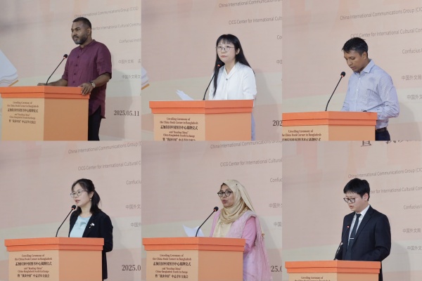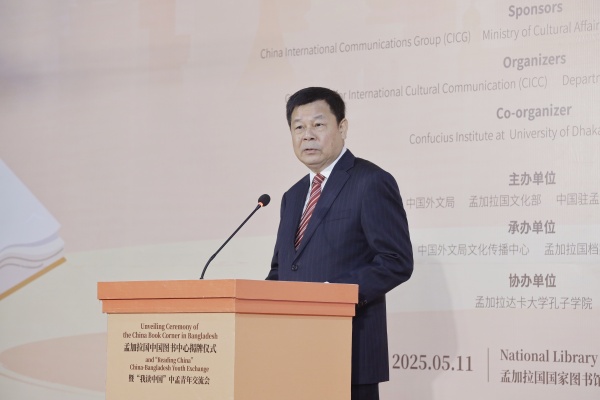 當地時間5月11日,孟加拉國中國圖書中心揭牌儀式暨“我讀中國”中孟青年交流會在孟加拉國國家圖書館舉行。中國外文局局長杜占元、中國駐孟加拉國大使姚文、孟加拉國文化顧問法魯基、孟加拉國文化部常秘拉赫曼出席活動並致辭,中孟兩國媒體、高校、企業青年代表等近300人參加活動。