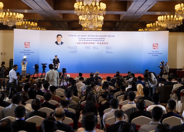當地時間5月11日,作為中孟建交50周年暨中孟人文交流年一項重要活動,《習近平談治國理政》中孟讀者會在孟加拉國首都達卡舉行。活動由中國國務院新聞辦公室、中國外文局和中國駐孟加拉國大使館主辦,中國外文局所屬外文出版社、中國外文局中東歐與中南亞傳播中心(人民畫報社)和孟加拉國中道傳媒出版有限公司共同承辦。