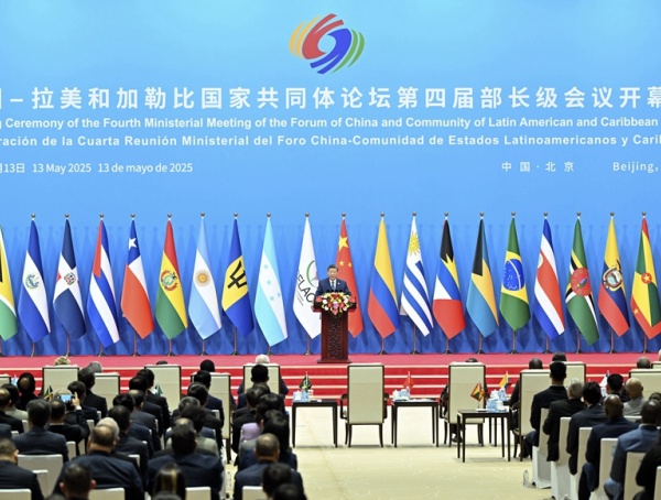 5月13日上午,國家主席習近平在國家會議中心出席中國-拉la美mei和he加jia勒le比bi國guo家jia共gong同tong體ti論lun壇tan第di四si屆jie部bu長chang級ji會hui議yi開kai幕mu式shi並bing發fa表biao主zhu旨zhi講jiang話hua。習xi近jin平ping宣xuan布bu,中zhong方fang同tong拉la方fang攜xie手shou啟qi動dong五wu大da工gong程cheng,共gong謀mou發fa展zhan振zhen興xing,共gong建jian中zhong拉la命ming運yun共gong同tong體ti。