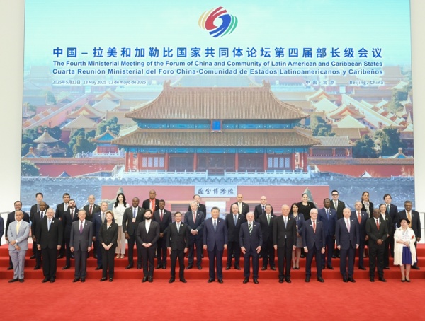 5月13日上午,國家主席習近平在北京國家會議中心出席中國-拉美和加勒比國家共同體論壇第四屆部長級會議開幕式並發表主旨講話。這是習近平同與會嘉賓集體合影。(新華社記者 丁海濤 攝)