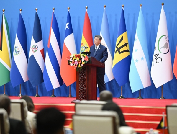 習近平最後強調,無論國際風雲如何變化,中國始終做拉美和加勒比國家的好朋友、好夥伴,同拉方在各自現代化征程上並肩前行,共同譜寫構建中拉命運共同體新篇章。
