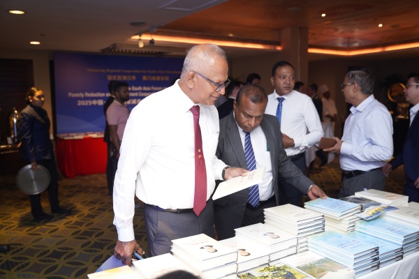 論壇期間,與會嘉賓參觀了“2025中國—南亞國家減貧與發展合作論壇主題書展”,斯裏蘭卡中國社會文化合作協會獲贈涵蓋中國減貧經驗、鄉村振興等主題的圖書。
