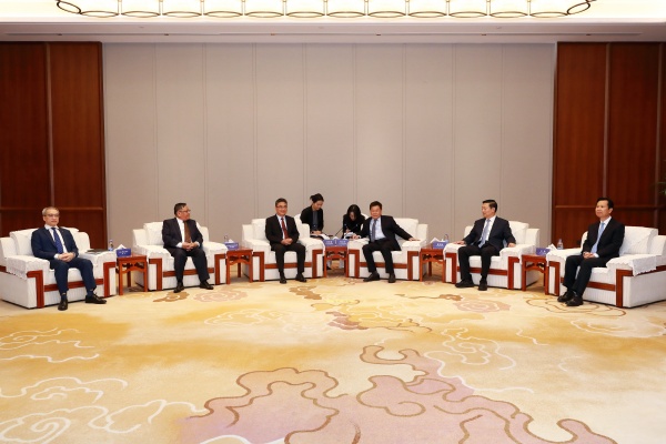 5月25日,第十四屆全國政協常委、中國外文局局長杜占元,中國公共關係協會會長、國務院新聞辦公室原副主任郭衛民,河南省人大常委會黨組副書記、副主任、洛陽市委書記江淩在河南洛陽會見出席2025中國—東盟媒體合作論壇的柬埔寨新聞部國務秘書肯·顧納瓦,越南文化、體育和旅遊部副部長潘心,中國—東盟中心秘書長史忠俊以及來自東盟國家的駐華使節和主流媒體代表。