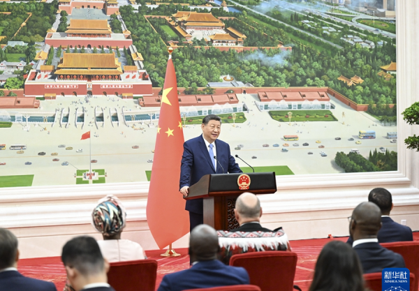儀式結束後,習近平在北京廳對使節們發表講話。
