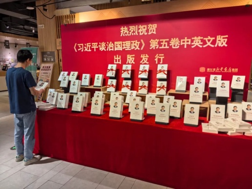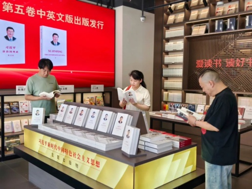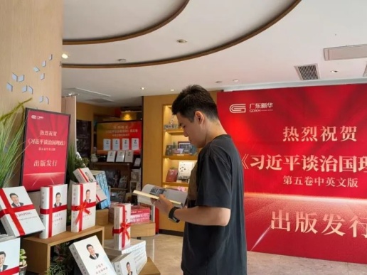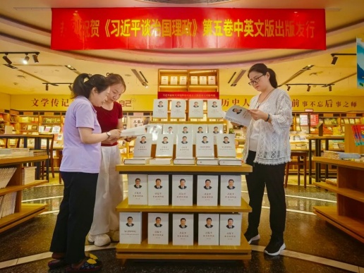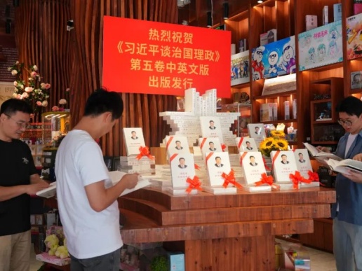 以下為《習近平談治國理政》第五卷中英文版圖書在北京、廣東、浙江、福建、四川、西藏、香港、澳門主要書店上架銷售及讀者閱讀的場麵。
