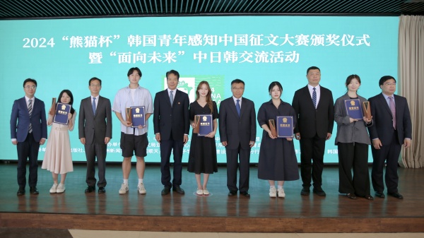 頒獎嘉賓為2024“熊貓杯”韓國青年感知中國征文大賽特等獎獲獎青年頒獎