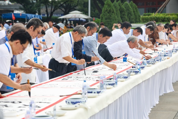 8月15日,80位書法家同書80米長卷活動暨《和平的豐碑——紀念中國人民抗日戰爭暨世界反法西斯戰爭勝利80周年》主題畫冊首發式在中國人民抗日戰爭紀念館舉行。