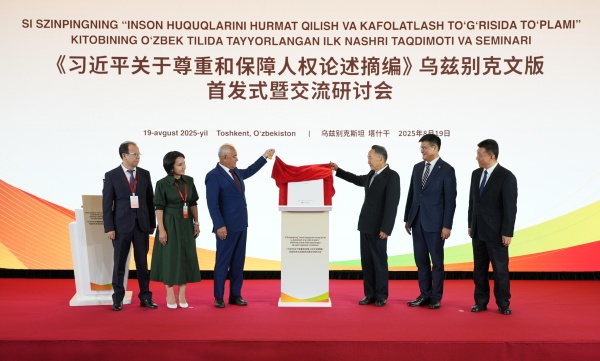 當地時間8月19日,《習近平關於尊重和保障人權論述摘編》烏茲別克文版首發式暨交流研討會在烏茲別克斯坦首都塔什幹舉行。