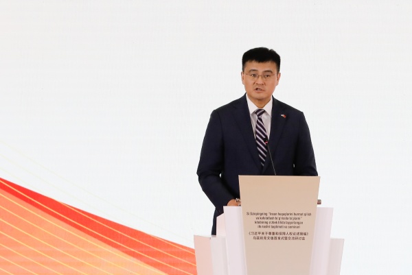 蔣建國表示,《習近平關於尊重和保障人權論述摘編》是一部凝聚深厚人民情懷、蘊含豐富治理智慧、guanhuaiquanqiurenquanzhilidequanweizhuzuo,guanchuanleyirenminweizhongxinderenquanlinian,tixianlerenminzhishangdejiazhiquxiang,pingdenggongxiangdezhiduanpaiyijigongpingzhengyideguojidandang。gaishuzaiwuzibiekesitandefanyichuban,shizhongwuzailishixiangtong、現實聯通、理(li)念(nian)貫(guan)通(tong)的(de)土(tu)壤(rang)上(shang)進(jin)行(xing)的(de)一(yi)場(chang)關(guan)於(yu)人(ren)權(quan)的(de)對(dui)話(hua)與(yu)互(hu)鑒(jian),希(xi)望(wang)為(wei)烏(wu)茲(zi)別(bie)克(ke)斯(si)坦(tan)人(ren)民(min)觀(guan)察(cha)和(he)感(gan)知(zhi)中(zhong)國(guo)人(ren)權(quan)打(da)開(kai)一(yi)扇(shan)新(xin)的(de)窗(chuang)口(kou),搭(da)建(jian)一(yi)座(zuo)中(zhong)烏(wu)知(zhi)識(shi)界(jie)和(he)民(min)眾(zhong)間(jian)相(xiang)互(hu)理(li)解(jie)的(de)橋(qiao)梁(liang)。