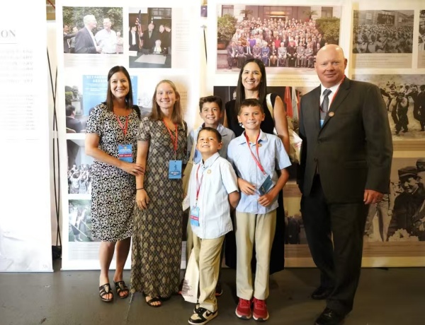 美國民眾在二戰中美合作主題圖片展合影留念