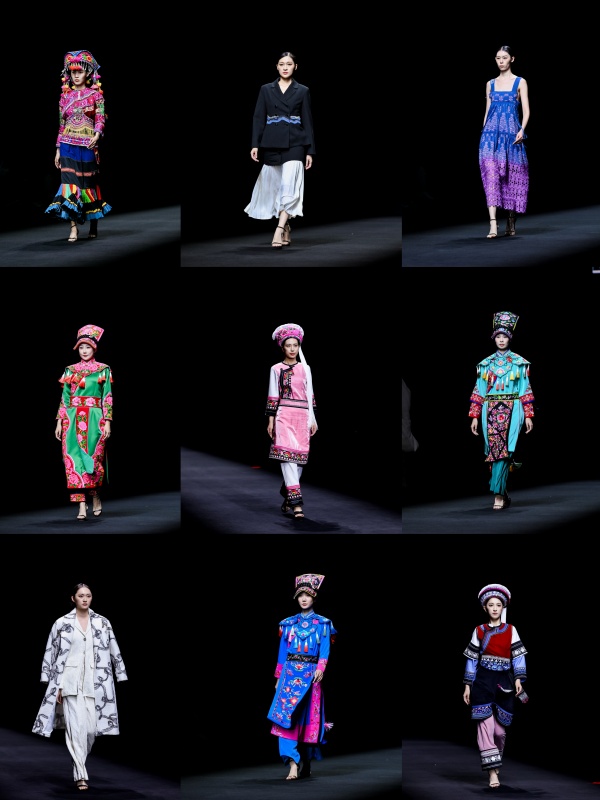 中國非遺服飾展示環節,以來自洛陽、漢中、五指山、大理和楚雄五地的特色服飾為載體講述中國故事。洛陽漢服形製典雅、禮韻深遠,彰顯華夏千年衣冠文明;羌族服飾攜山野清風而至,繡紋深藏民族印記與吉祥寓意;海南黎錦華美展現三千年非遺技藝,植物染紋樣織就南海瑰麗傳說;大理白族服飾凝結風花雪月,針線間詮釋自然詩意與生活哲學;楚雄彝族服飾紋樣華麗、銀飾精美,彰顯彝族文化獨特魅力。