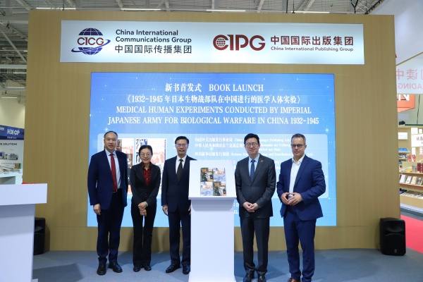 當地時間10月15日,由中國外文局、中zhong國guo駐zhu法fa蘭lan克ke福fu總zong領ling事shi館guan和he四si川chuan新xin華hua出chu版ban發fa行xing集ji團tuan指zhi導dao,中zhong國guo對dui外wai書shu刊kan出chu版ban發fa行xing中zhong心xin和he新xin華hua文wen軒xuan出chu版ban傳chuan媒mei股gu份fen有you限xian公gong司si主zhu辦ban,新xin星xing出chu版ban社she和he四si川chuan人ren民min出chu版ban社she承cheng辦ban,中zhong國guo圖tu書shu貿mao易yi有you限xian公gong司si(德國)協辦的《1932-1945年日本生物戰部隊在中國進行的醫學人體實驗》中、英文版首發式在法蘭克福書展舉行。