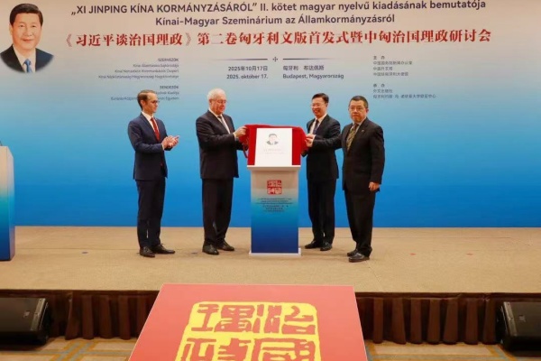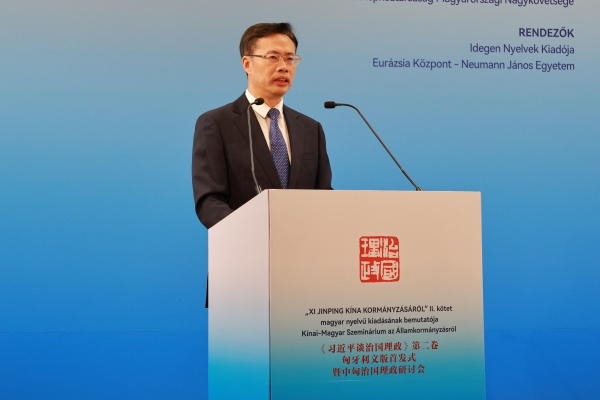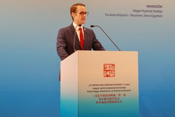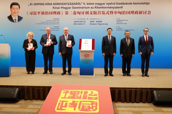 當地時間10月17日,《習近平談治國理政》第二卷匈牙利文版首發式暨中匈治國理政研討會在匈牙利首都布達佩斯舉行。中國外文局副局長餘應福,匈牙利國會副主席法澤考什·山多爾,中國駐匈牙利大使龔韜,匈牙利國會議員維吉·伊姆雷,匈牙利外長代表、中國司司長托特-梅薩洛什·瑪爾道,匈牙利約翰·馮·諾依曼大學歐亞中心主任、匈牙利駐上海前總領事霍爾瓦特·樂文特等中匈兩國嘉賓和政界、高校、智庫、媒體代表約200人出席活動。