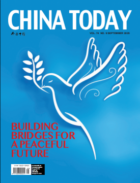 本期《今日中國》(阿文、英文)封麵通過故事性的報道,回顧了戰爭中的人道主義精神與國際友誼,分別聚焦參加“今日中國會客廳——和平之橋:大灣區與歐洲青年領袖對話”中歐青年領袖,“裏斯本丸”事件獲救英軍戰俘的後代,上海猶太難民紀念館,有著“南京好人”之稱的約翰·拉貝的孫子、德國海德堡大學名譽教授、全球約翰•拉貝交流中心主席托馬斯·拉貝,講述正在發生和曾經發生的、閃爍著人道主義精神和國際友誼的故事,從不同側麵展現推動構建人類命運共同體、共築和平之橋的當代價值和意義。