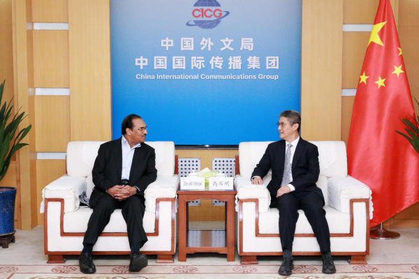 10月27日,局總編輯高岸明會見到訪的巴基斯坦前總理特別助理、巴基斯坦“讀懂中國”論壇理事長,第二屆蘭花獎“友好使者獎”獲獎者紮法爾·烏丁·馬赫默德。局國際合作部、中國對外書刊出版發行中心相關負責同誌參加會見。