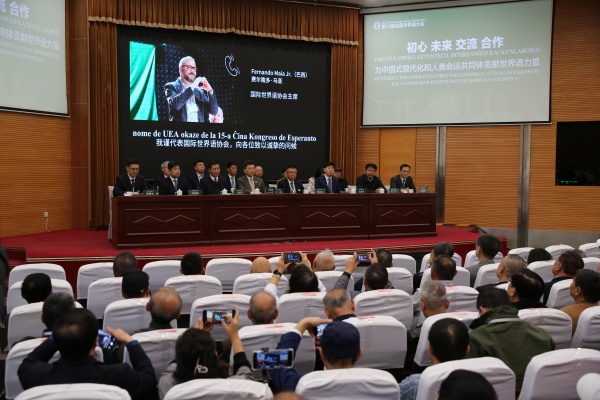 11月1日,第15屆全國世界語大會在山西財經大學開幕。中國外文局副局長於濤,中華全國世界語協會(以下簡稱 “全國世協”)會長劉大為,山西省委宣傳部副部長王招宇,山西省社科聯副主席呂安生,共青團山西省委副書記吳興,山西財經大學黨委常委、副校長李向陽,國際世界語協會常委弓曉峰出席大會。國際世界語協會主席費爾南多·馬亞視頻致辭。全國世協副會長、中國外文局亞太傳播中心主任楊建平主持開幕式。