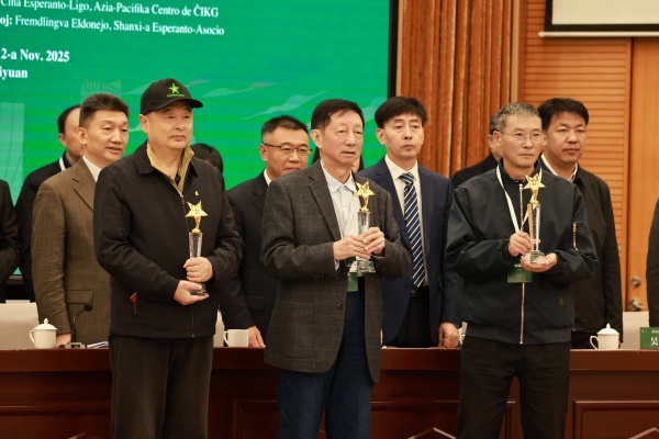 大會還為“從事世界語工作60年”的資深世界語者頒發紀念杯,禮讚其業績貢獻,傳承致力於世界語事業的責任擔當與奉獻精神。