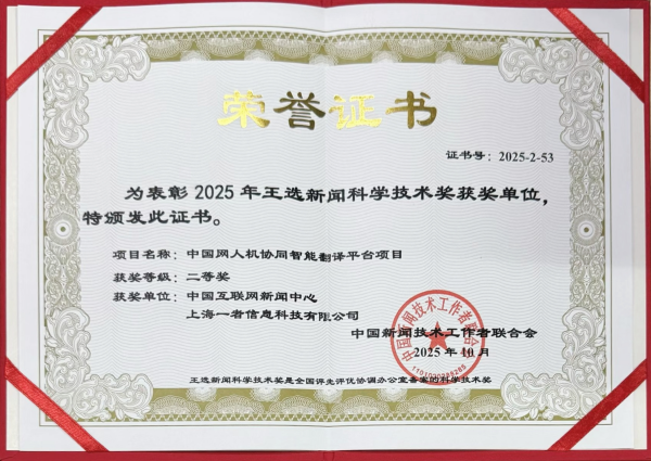 10月31日,中國新聞技術工作者聯合會2025年學術年會暨王選新聞科學技術獎頒獎大會在四川成都舉行,中國網申報的“人機協同智能翻譯平台”項目榮獲王選新聞科學技術獎(項目獎)二等獎。