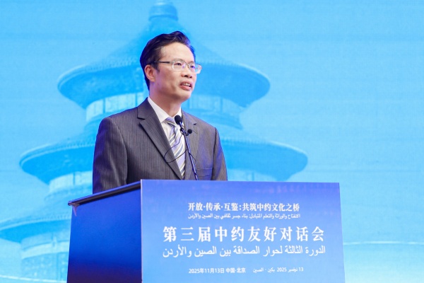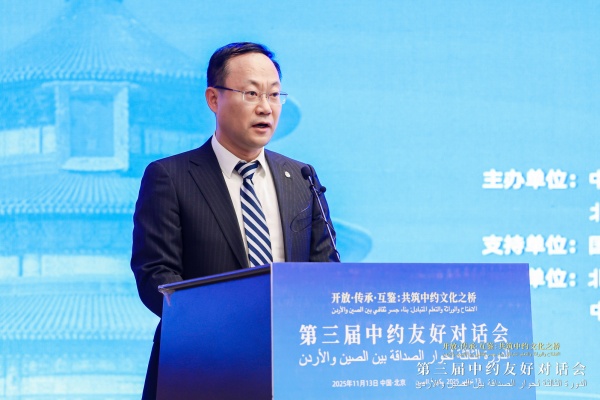 11月13日,第三屆中約友好對話會在京舉行。中國外文局副局長餘應福,約旦駐華大使胡薩姆·侯賽尼,中國駐約旦大使郭偉,北京外國語大學黨委常委、副校長丁浩致辭。約中友好協會主席賈邁勒·達穆爾、國家開發投資集團有限公司新聞發言人張亮作主題發言。本屆對話會以“開放·傳承·互鑒:共築中約文化之橋”為主題,來自中國、約旦、埃及等多個國家和地區的高校、企業、政府機構代表共200餘人參加活動。