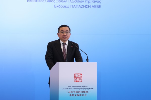 謝剛表示,黨的二十屆四中全會審議通過的《中共中央關於製定國民經濟和社會發展第十五個五年規劃的建議》,係統部署了擴大高水平對外開放等重大舉措,充分展現了中國堅持開放合作、互利共贏的信心。他指出,《習近平談治國理政》希臘文版的出版,將幫助希臘讀者深入了解新時代中國以全麵深化改革為根本動力、以人民至上為根本立場、以文明互鑒為對話橋梁、以(yi)多(duo)邊(bian)主(zhu)義(yi)為(wei)全(quan)球(qiu)治(zhi)理(li)基(ji)本(ben)路(lu)徑(jing)的(de)治(zhi)國(guo)理(li)政(zheng)智(zhi)慧(hui)。期(qi)待(dai)以(yi)書(shu)為(wei)媒(mei),進(jin)一(yi)步(bu)拉(la)緊(jin)中(zhong)希(xi)文(wen)明(ming)互(hu)鑒(jian)和(he)務(wu)實(shi)合(he)作(zuo)紐(niu)帶(dai),為(wei)推(tui)動(dong)兩(liang)國(guo)全(quan)麵(mian)戰(zhan)略(lve)合(he)作(zuo)夥(huo)伴(ban)關(guan)係(xi)發(fa)展(zhan)注(zhu)入(ru)新(xin)的(de)思(si)想(xiang)動(dong)力(li)。