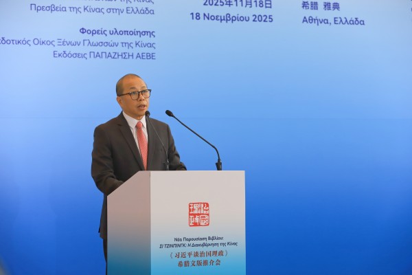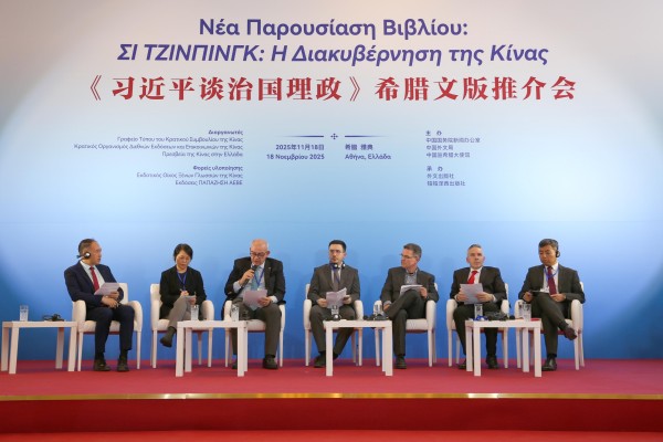當地時間11月18日,由國務院新聞辦公室、中國外文局和中國駐希臘大使館主辦,外文出版社、希臘帕帕澤西出版社承辦的《習近平談治國理政》希臘文版推介會在希臘首都雅典舉行。