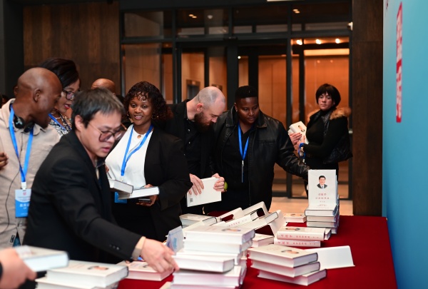 活動中,莫高義、於濤向南非嘉賓贈送《習近平談治國理政》第五卷英文版圖書。